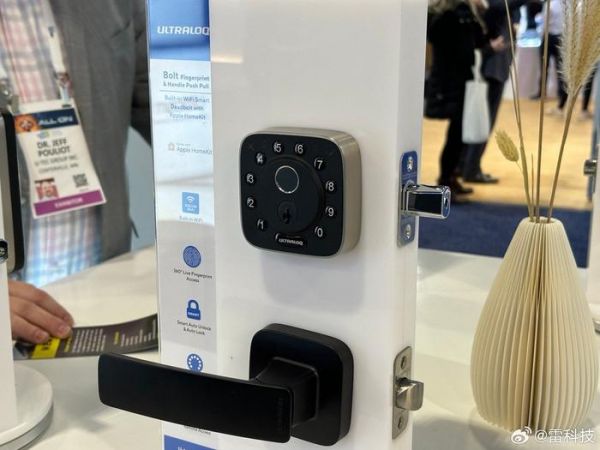 (图源:雷科技摄制)Ultraloq智能门锁可以说是款式各异,甚至还有迷你尺寸的指纹密码锁。其超小的体积在一些不能改门的场景下会有更好的通用性。此外,旗下的产品支持HomeKit、Alexa、SmartThings等不同协议,也显示出了其兼容性和便捷性。