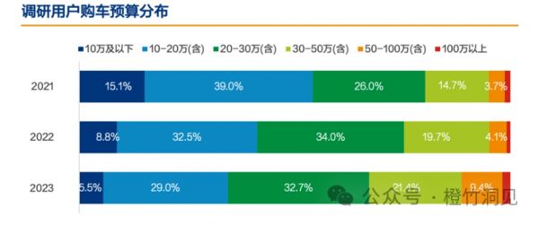 汽车之家的年终分析报告说:相比2021年,2023年购车预算10万以下的用户占比明显下降,而20~50万区间用户占比均上升了6.7%。