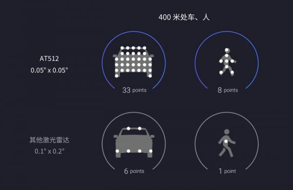 在测距能力方面。AT512可实现 300 米标准测远(@10% 反射率),相比 AT128 提升了50%。最远测距达到 400 米,是市场同类远距激光雷达的 2 倍。同时,AT512 的超远测距性能让车辆至少提前一倍距离发现目标,为系统安全决策增加了 40% 以上的反应时间。
