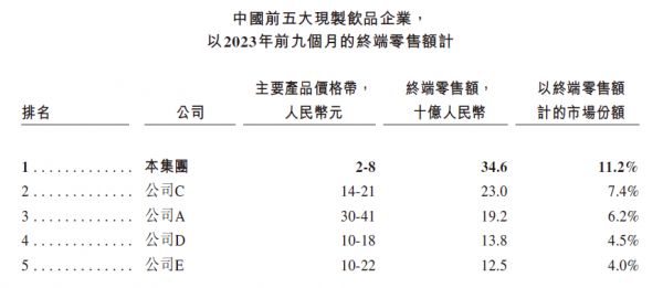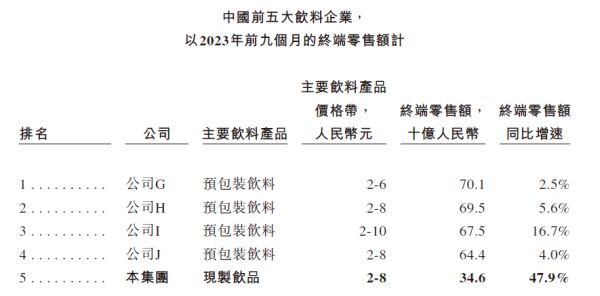 图片来源:蜜雪冰城招股书,图注:公司G、H是总部位于中国的饮料企业;公司H是总部位于中国的食品饮料企业;公司J是一家总部位于美国的饮料企业的中国分公司