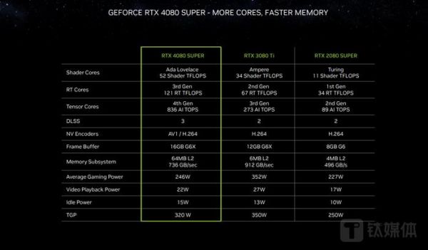 The Verge认为,英伟达的目标是将RTX 4080 SUPER瞄准现有的RTX 3080 Ti或 RTX 2080 Super 用户,而不是 RTX 40 系列的采用者。与RTX 4080相比,性能提升应在1%-5%之间,具体取决于游戏,因此本质上,它的性能达到RTX 4080级别(或更好),但价格要比4080低200美元。