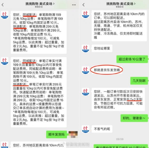 笔者从“挑挑购物”客服处了解到,目前,即配服务仅限苏州卖场10公里范围内,满199元免10kg运费,且冷藏、冷冻商品仅支持即时配送。快递配送则是299元免10kg运费,无锡、南通、宁波、杭州地区仅支持京东快递配送,商品由Costco苏州店拣货打包发货,正常T+2天到货。
