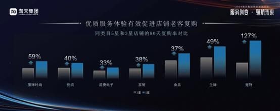 数据显示,优质的消费者服务有效促进了老客复购。淘宝天猫平台中同类目5星店铺商家的复购率显著高于3星店铺,尤其在宠物类目中5星店铺复购率高出127%。