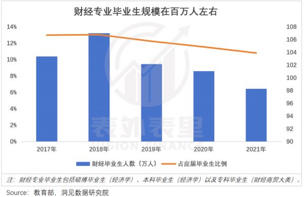 据《新财富》统计,从2010年到2019年,银行、证券、公募/私募三大行业大约每年能腾挪出15万个就业岗位。但上文说过,国内每年财经类专业毕业生人数是百万人量级。