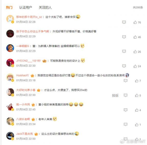 董明珠曾表示,这款空调是专为新婚人群准备的,外观设计是格力尤为强调的。从设计与审美来看,它有着渐变粉与19朵玫瑰的外观,有着会幻变紫色的花蕾,有着朦胧的玫瑰花瓣的机身。重现了90年代的审美风格。因此被网友吐槽设计老气,售价过于昂贵。目前,该款空调仍可在线上购买。