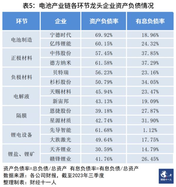 要维持快速的产能扩张,资金安全是关键保障。梳理不同产业链环节的头部企业资产负债情况可以发现,头部企业由于过去两年的量价齐升,都有比较好的现金流表现,现在的资产负债率相对比较健康。而且2023年的价格大跌是相对于2022年的高位而言,电池产业链的绝大部分头部企业依然有可观的净利润,财务健康方面并没有太大风险。