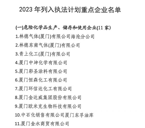图片来源:厦门市海沧区应急管理局《关于印发2023年度安全生产执法监督检查计划的通知》截图