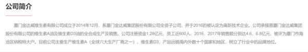 而金达威维生素是金达威的重要子公司。官网资料显示,厦门金达威维生素有限公司成立于2014年12月,系厦门金达威集团股份有限公司全资子公司,并于2016年被认定为高新技术企业。公司承接原厦门金达威集团股份有限公司的维生素A油及维生素D3油的全合成生产及销售。