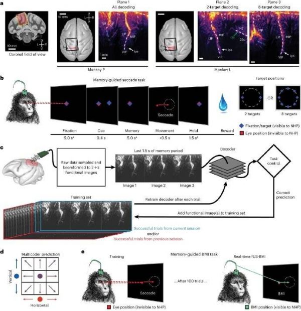 令人玩味的是,去年12月顶级学术期刊《Nature》子刊《自然·神经科学》也公布了一份研究成果:美国加州理工学院研究团队基于脑机接口(BMI),开发了一种功能性超声(fUS)神经影像新兴技术。通过在两只恒河猴上进行实验测试,最终发现fUS技术可以成为“在线”BMI基础——它可以读取大脑活动,通过用机器学习编程的解码器破译其含义,从而控制一台延时极短、可准确预测运动的计算机。这其实与脑虎科技在去年7月发布的新成果一脉相承。