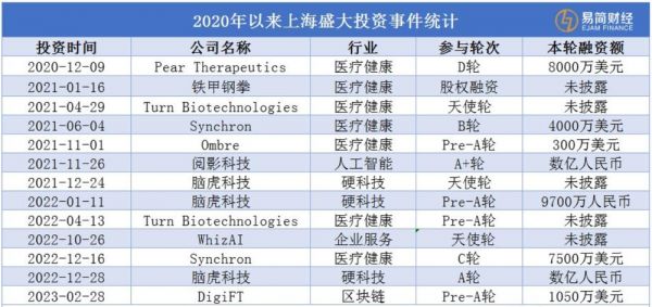 除了在学界的捐助之外,陈天桥的投资范围还包含脑科学及医疗健康领域的公司。据易简财经统计,上海盛大近3年投资的企业有9家,以医疗健康领域为主,参与融资轮次多在A轮前。