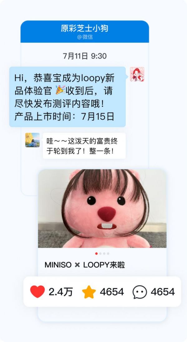 “企业微信,是架设在名创与KOC之间的桥梁,让好的内容不断被激发、被创造,让名创的好产品,被更多人看见,成为粉丝喜爱的爆品。”