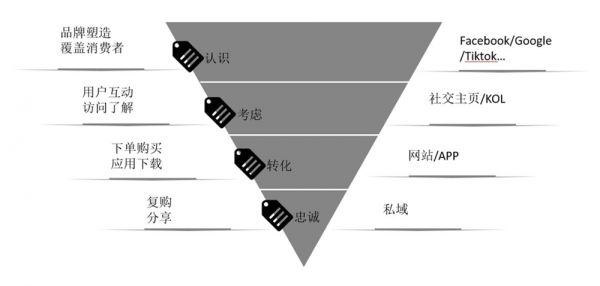 我们希望通过最大范围的曝光,向消费者传递品牌或产品信息;再通过进一步的用户访问,让大家了解产品和优势;然后进行线上转化,无论是下单购买还是应用下载;最后希望增加用户复购,培养更忠诚的用户,帮客户找到在全球的消费者。