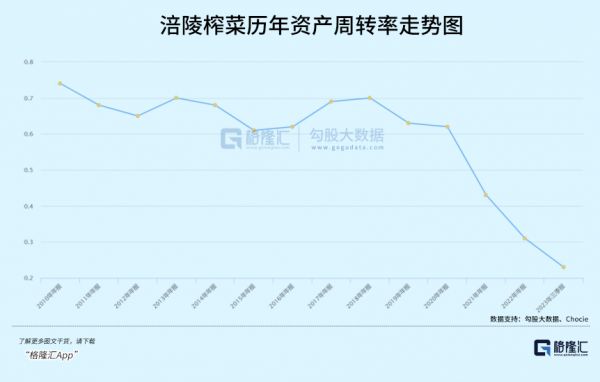 值得注意的是,截止三季度末,涪陵榨菜合同负债为0.59亿元,同比下滑61%。而2019-2022年,该项数值分别为1.02亿元、1.14亿元、0.9亿元、1.62亿元。从合同负债数据可以推断,公司渠道库存不小,经营压力偏大。