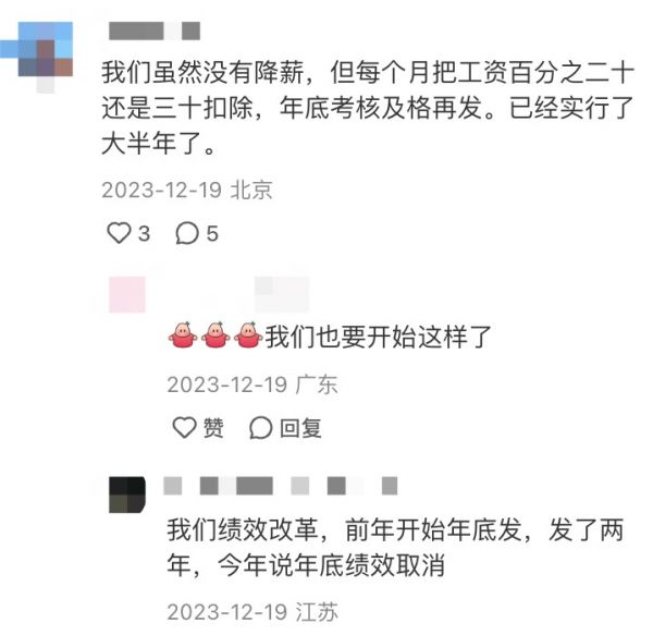 每月到手的薪水降了,和高校调整留存绩效有关。一位北京高校的教师说,虽然没有降薪,但每个月把工资百分之二三十扣除,年底考核及格再发。