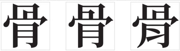 “骨”字在中国香港、中国大陆(内地)和中国台湾的不同写法,图片来自:《汉字王国》
