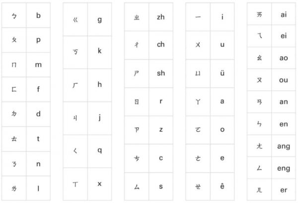 在王照版官话合声字母基础上,发展出来的“注音符号”与“汉语拼音”发音的对应表。目前,中国台湾延用民国的注音符号,中国大陆采用 1950 年代发明的汉语拼音。