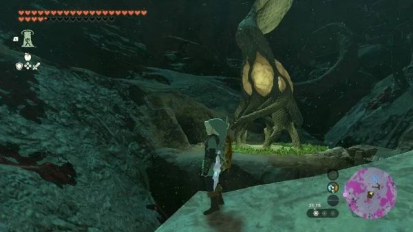 不同于地面层那些相对较小、水平方向的“洞穴”,《王国之泪》中的“深穴”特指那些纵向展开的巨洞。这些被瘴气萦绕的巨洞一端连接着海拉鲁大陆的表面世界,另一端则通向深不见底的地下世界。