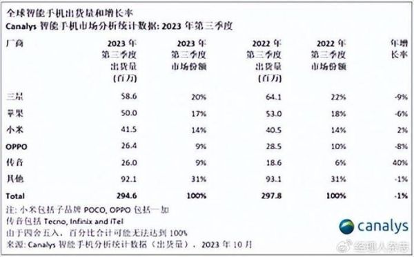 2023年第三季度,小米在全球智能手机市场出货量排名第三,落后于三星和苹果。另一方面,尽管全球智能手机市场出货量降幅有所收缩,但仍然在下降也是事实。