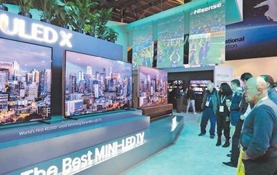 海信携全球首款8K屏幕发声激光电视、全球首款40000+分区Mini LED电视——110UX电视等全场景显示技术解决方案亮相展会(见上图,本报记者李志伟摄)。在110UX电视展品前,很多人驻足观看,高清画质不时获得称赞。获得“2024 CES创新奖”的海信车用激光显示技术,展示了激光显示在车载领域的潜力。海信国际营销公司副总裁戴维·戈尔德对记者表示,海信致力于将显示技术融入生活,为消费者提供超越屏幕的体验,让其成为生活的一部分。