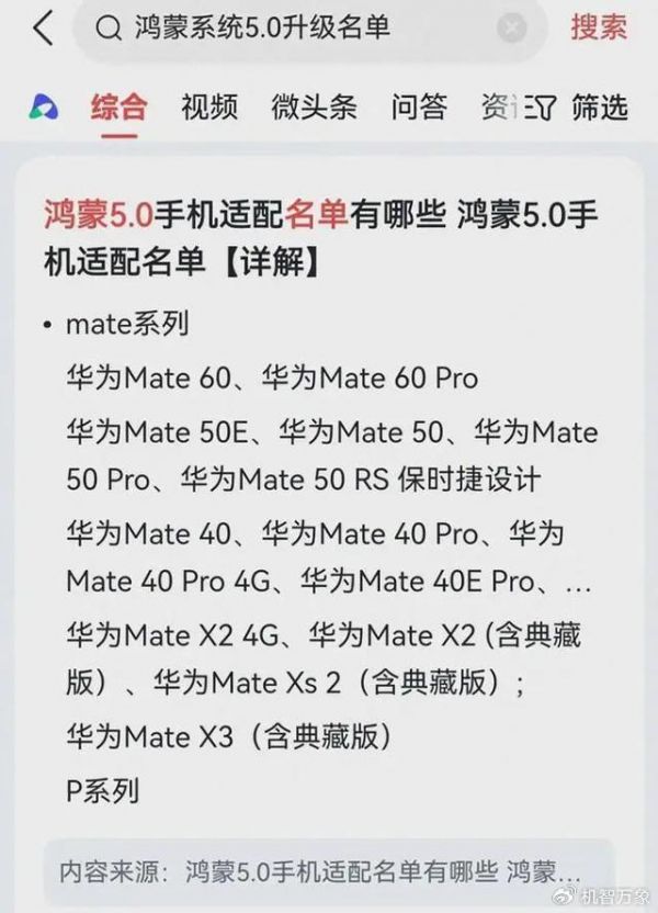 站稳全球三大操作系统,鸿蒙OS5.0更新名单曝光,Mata40系列以上