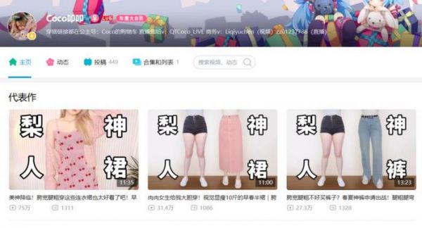 观察主页就能发现,@Coco叩叩_精准定位梨形身材的女性用户,针对其"修饰胯宽、腿粗"等诉求打造内容,借此与用户建立起情感联系,并在直播带货期间做种草。
