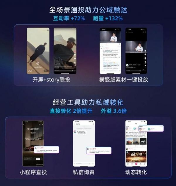 这样的开放也依托于测试数据的反馈。相较过去单点投放," 通投 " 有助于拿到更好的广告效果,互动率能提高 72%,跑量效果提高 132%。再配上经营工具助力,私域直接转化效果能提升 2 倍。