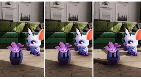 Meta 希望通过 Passthrough Relighting 让混合现实变得更加逼真和富有吸引力。上面的配图直观地展示了三种不同效果:左侧是没有任何阴影的原始状态,中间是添加简单的阴影后的效果,右侧则是 Passthrough Relighting 带来的逼真阴影效果。下图则展示了高光如何从真实环境反射到虚拟物体上。