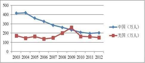 2003~2012年中美两国失业保险金申领人数对比图(图片来源:受访者供图)