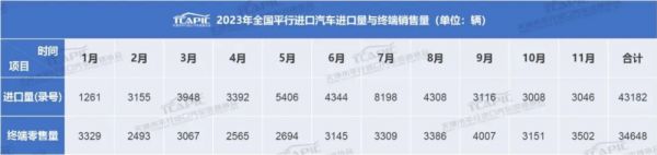 二、2023年1~11月:平行进口43182辆,仅售34648辆