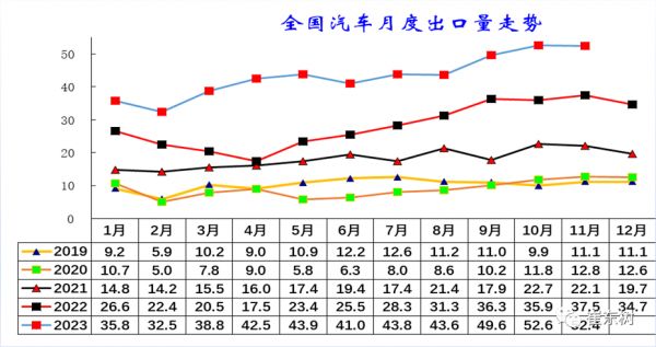 整车出口月度走势(单位:万辆) 来源:崔东树公众号
