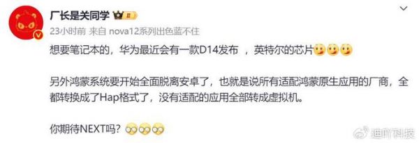 值得一提的是,原生鸿蒙软件的表现应该会有巨大的惊喜,这点可以好好进行期待下。