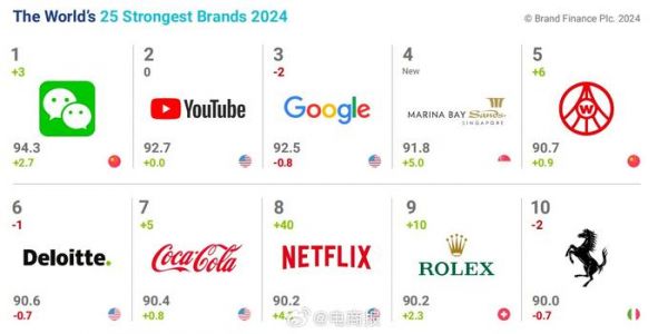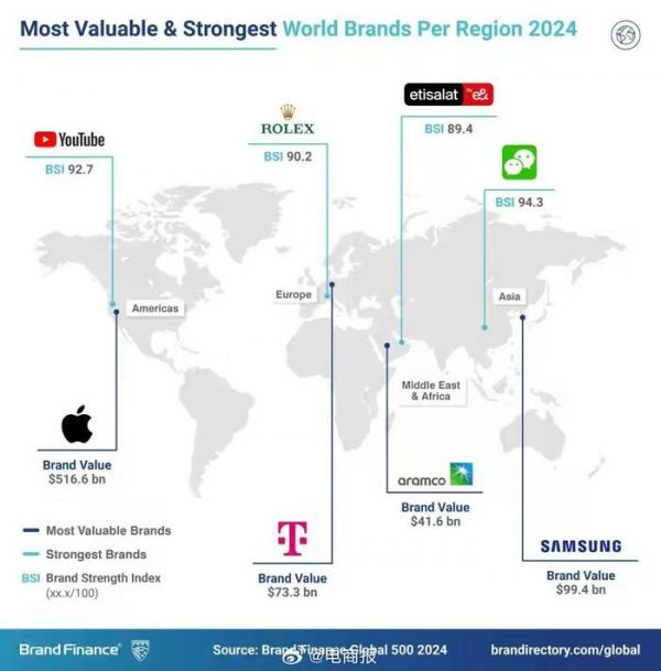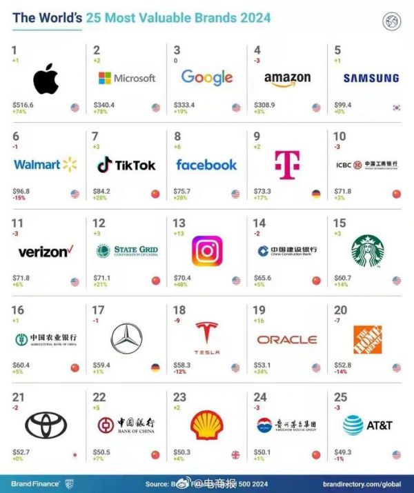 2024全球品牌价值排行榜:苹果重回第一,亚马逊第四,TikTok第七!(图源:Brand Finance)