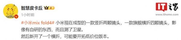 据博主 @智慧皮卡丘 爆料,小米正在测试三款折叠屏手机,并且两款已经成型,并且测试了卫星通信功能。