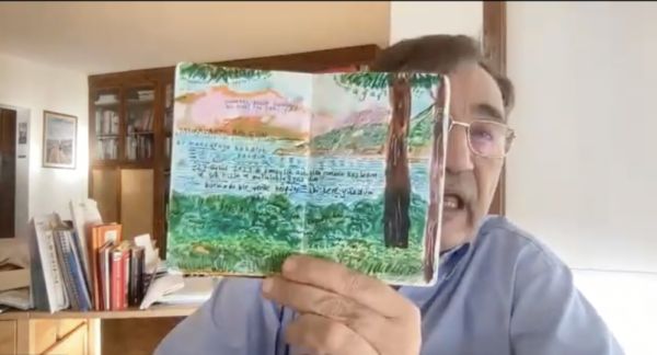 〓 2023年12月,帕慕克接受《凤凰周刊》视频采访时,展示他记录日常的笔记本。图源:视频截图