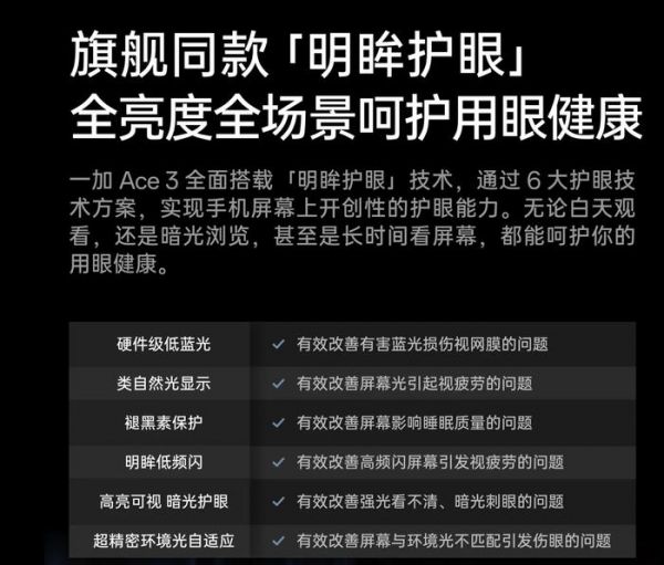 当然,厂商们肯定也不希望消费者在用了自己的产品后出现各种各样问题,因此护眼就成了不少厂商们宣传的重点之一,尤其到了2023年,随着荣耀带头在荣耀90系列上首发了3840Hz超高频调光技术,意味着手机护眼屏的时代正式到来。在这款手机发布后你可以发现绝大多数新机都会宣称自己搭载了某某护眼技术,甚者还有厂商表示它们家的屏幕可以起到助眠和提升视力的效果。
