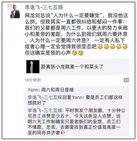 这些话出自三七互娱创始人兼董事长李逸飞的朋友圈。