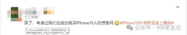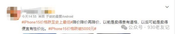2023年9月底iPhone 15系列的发售也并未引起过去苹果新品发售时的热潮。在京东、拼多多等授权经销商平台上,iPhone 15系列产品在发售后不久就出现了各类价格优惠。