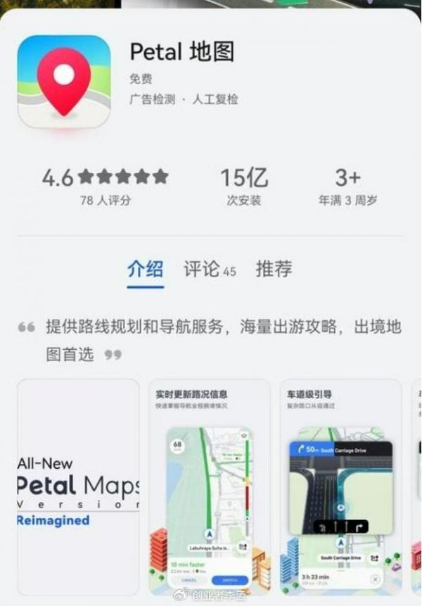 华为花瓣地图国内上架 3 天,2020年以来国外+国内安装累计15 亿次,该软件都有哪些特点?近日,CNMO了解到,华为应用市场上架了Petal地图(花瓣地图)。国内上架3天,国外已经上架了3年,累计安装15亿次,安装包只有79.9MB。