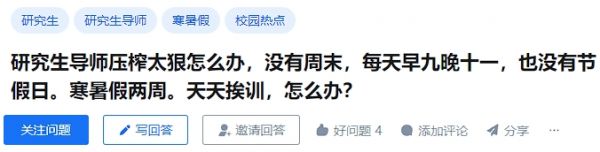 每周去实验室至少六天,每天10个小时的工作量打底,没有周末,没有寒暑假,只有赶上过年才能休上7天,期间还必须时刻面对导师的微信轰炸。