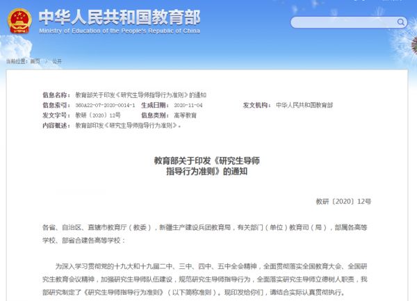 因而在2020年,教育部就已经印发了《研究生导师指导行为准则》,明确对导师们提出了“十不得”。