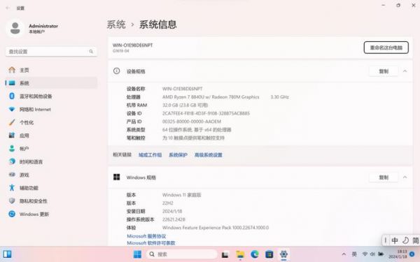 该掌机配有 32GB 内存,搭载 Windows 11 22H2 版本系统。官方表示,要完整体验 AI PC,至少是 Windows 11 23H2 版本。