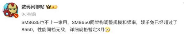 据悉,博主@数码闲聊站 在今天的一份爆料中提到,一款被称为SM8635的芯片产品将会在接下来到来,其将与SM8650同架构调整规模和频率,安兔兔跑分超过SM8550,性能同档无敌,详细规格暂定3月。