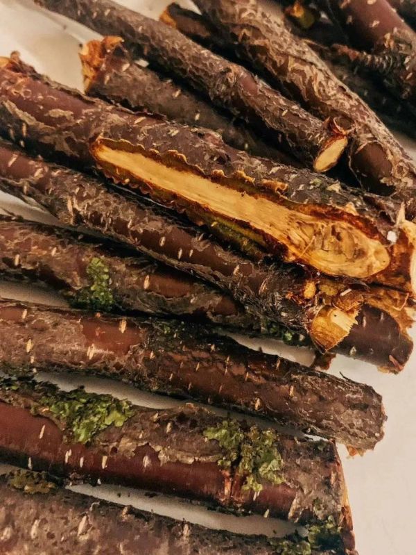 大家拿出架在嘴里的木棍,气氛又轻松了起来。“松枝撑着真是疼,但它味道怎么这么好!”有人说,大家纷纷笑着附议。