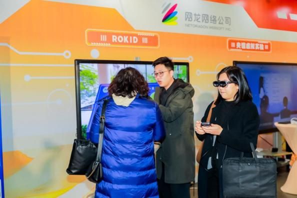 在媒体恳谈会现场,网龙展出了EDA、未来实验、央馆虚拟实验、Rokid等项目,吸引了现场媒体记者的争相体验。