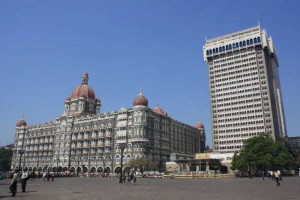 孟买的高档酒店位于海滨大道沿线,图左是最负盛名的泰姬·玛哈尔酒店(Taj Mahal Palace)。孙佳 摄