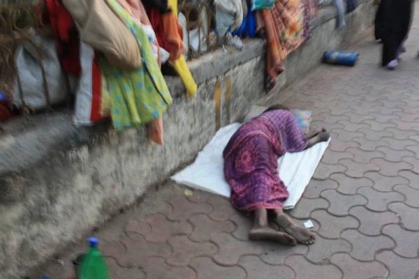 在孟买的一条人行道上,我看见一位瘦弱的女性,蜷缩在地一动不动,不知道是病了还是睡着了,无数人和车经过她身边,却没有人停下来看她一眼。像这样一无所有躺在街头的女人、老人和孩子,难以计数。