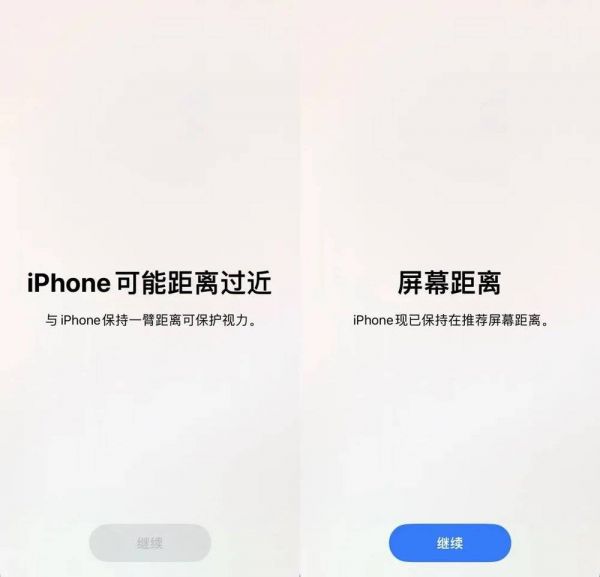 “屏幕距离”的提醒是自动的,但让它消停是手动的。当距离到位,“继续”按钮亮起,按下才能继续愉快地玩耍。