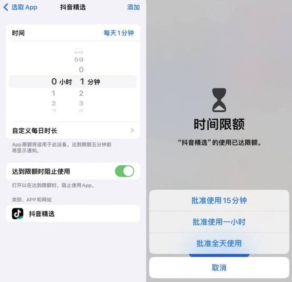 第一次到达时间限额,可以直接选择再使用一段时间,哪怕又到达了时间限额,输入屏幕使用时间密码,还是可以延长时间甚至全天使用的。