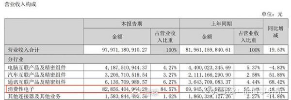 截至2023H1,立讯的营收还有84.57%来自于消费电子、4.27%来自电脑。