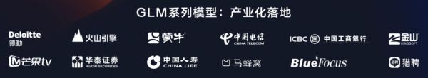 张鹏在他的主题演讲中提到了12家不同领域的重点客户,并表示GLM系列模型目前已经在很多行业实现了产业化落地,目前已有企业客户超2000家,其中200多家深度应用客户。